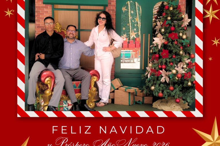 La familia de la Dra. Gabriela Bustamante, Erik Sotomayor (Esposo) y Erik Sotomayor Jr. (hijo) les desea una Feliz Navidad y un Próspeto Año 2026.